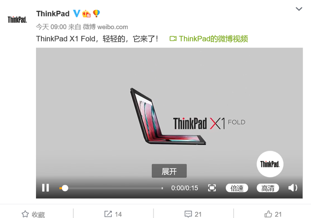 PingWest品玩8月20日訊,聯(lián)想今天發(fā)布視頻,為即將推出的 ThinkPad X1 Fold 進行預熱。這是全球首款折疊屏電腦。