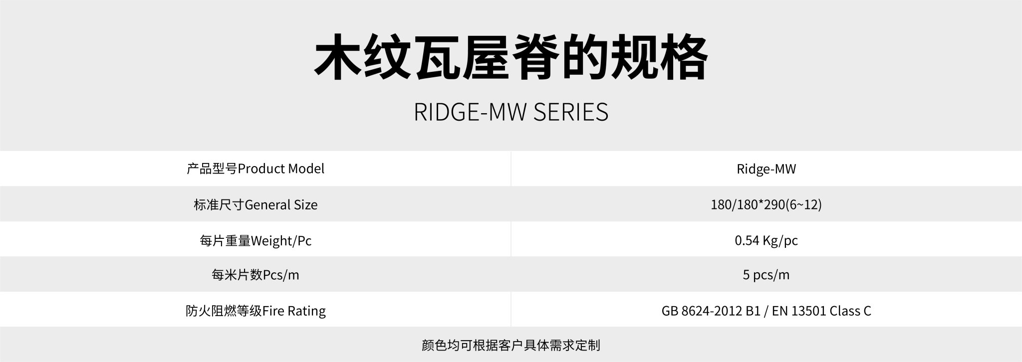 木紋屋脊瓦導熱系數(shù)為0.325W/mk,是粘土瓦的1/3,厚水泥瓦的1/5,0.5mm厚彩鋼瓦的1/2000。在不考慮加保溫層的情況下,屋面屋脊瓦的隔熱保溫性能達到更佳。